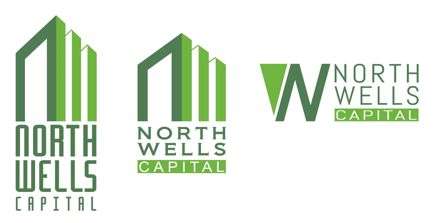 This logo's play on the North Wells' initials in shades of green provides a fresh, strong impression to reflect the investment company's core values.