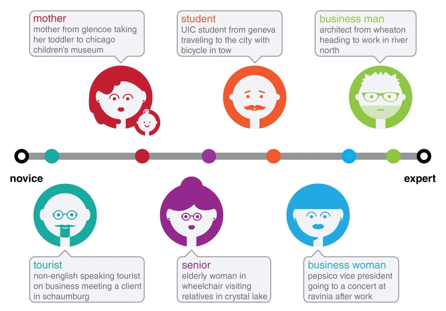 Playful and vibrant icons that represent the wide range of users that travel through Chicago’s Ogilvie Transportation Center.
